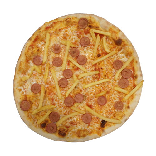 Pomodoro, mozzarella, würstel, patatine fritte*