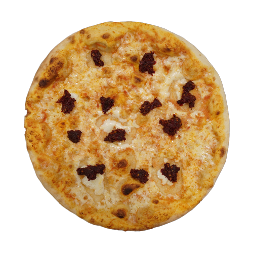 Pomodoro, mozzarella, gorgonzola, cipolle, olive, salame piccante, acciughe, peperoncino