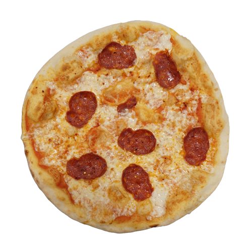 Pomodoro, mozzarella, tonno, funghi, carciofi, capperi, acciughe, würstel, salme piccante