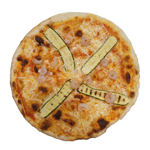 Pomodoro, mozzarella, gamberetti*, zucchine grigliate
